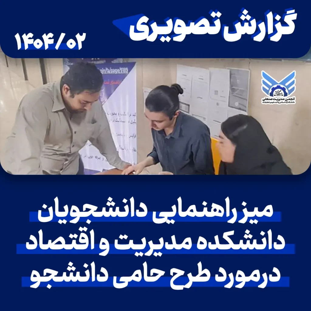برنامهها و رویدادهاگزارش تصویری میز راهنمایی دانشجویان دانشکده مدیریت و اقتصاد درمورد طرح حامی دانشجو1 خرداد 1404
